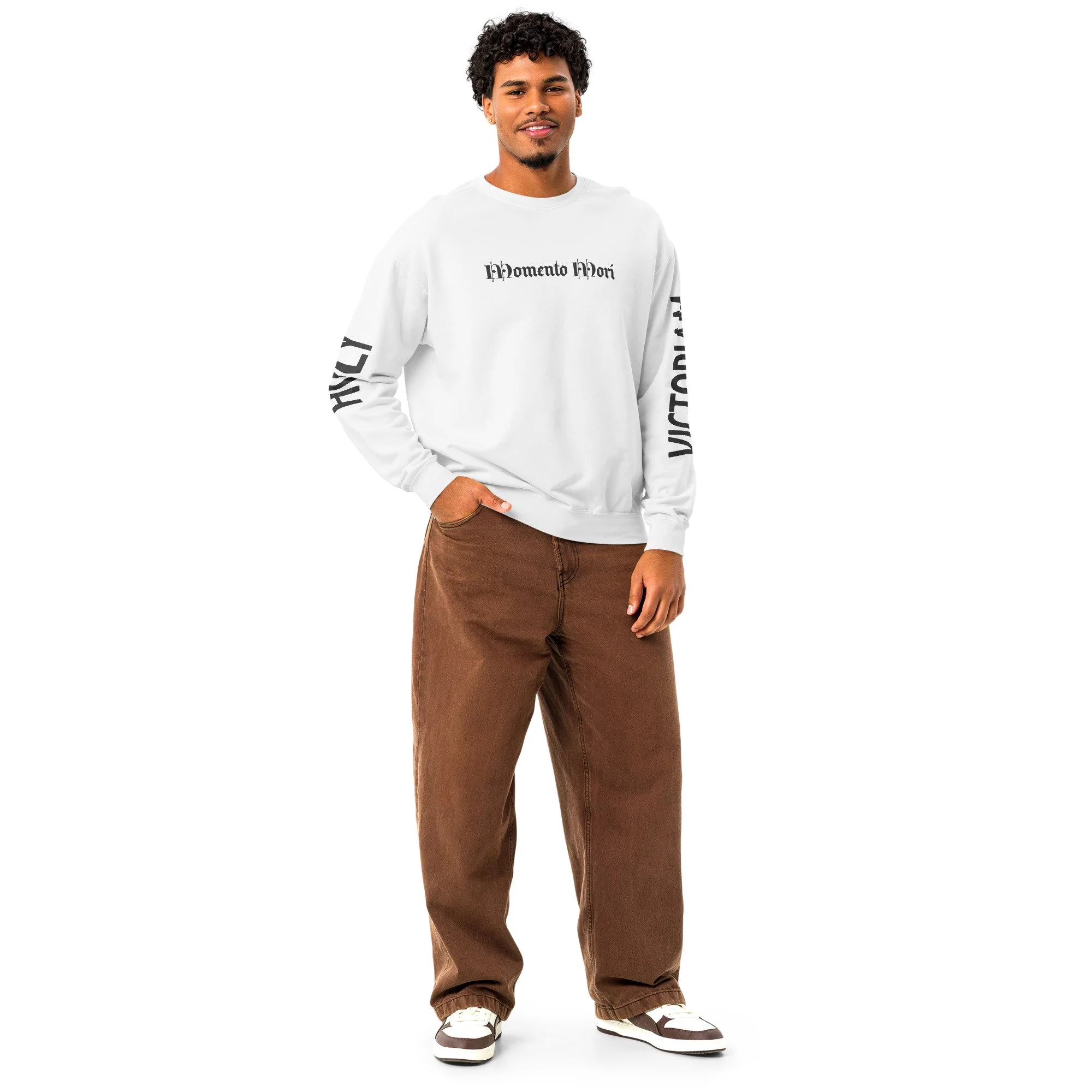 Momento Mori Victoriam - Add an instant sacred vintage touch to your wardrobe with this garment-dyed fleece crewneck. Its soft, midweight cotton fabric and relaxed fit make it perfect for everyday wear. Each piece has subtle color variations that create a unique, lived-in look.